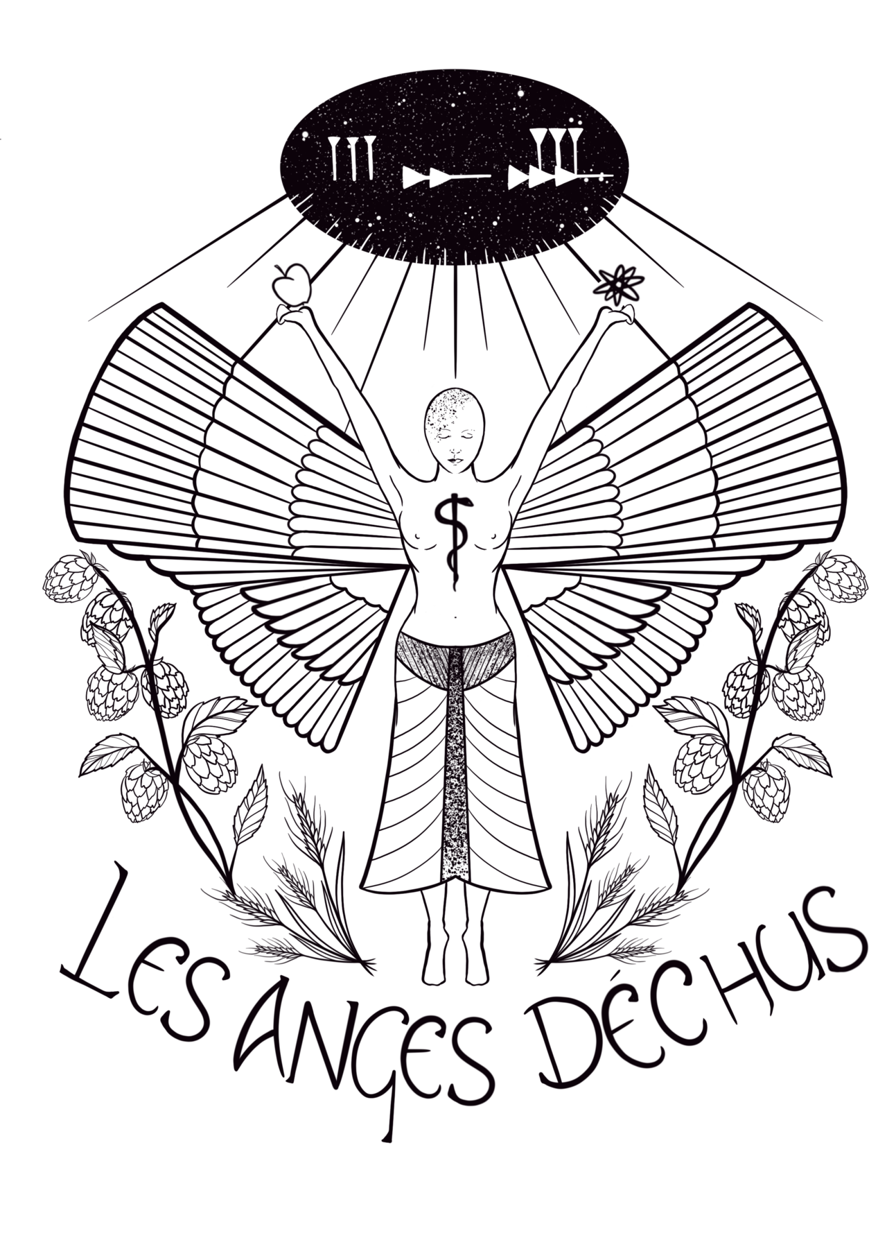 En partant de l’histoire de la bière, nous avons choisi le nom Les Anges Déchus et notre logo qui symbolise tous ces savoirs ramenés par les anges.